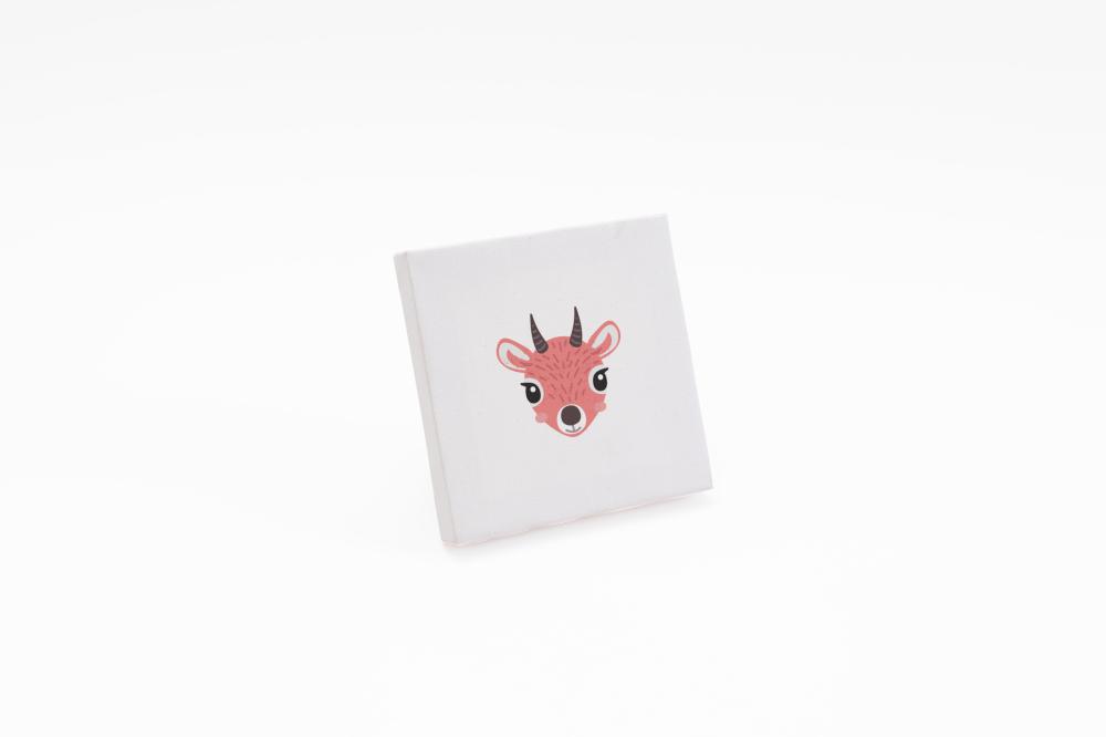 - مع لوحات بأحجام مختلفة برسمة الغزالة.