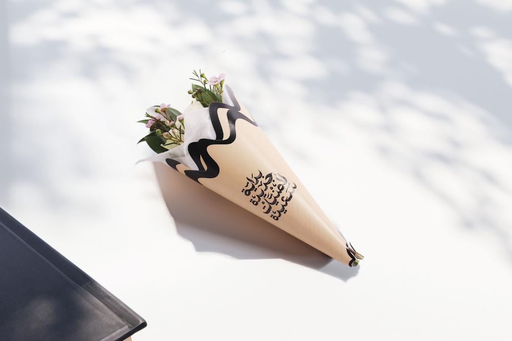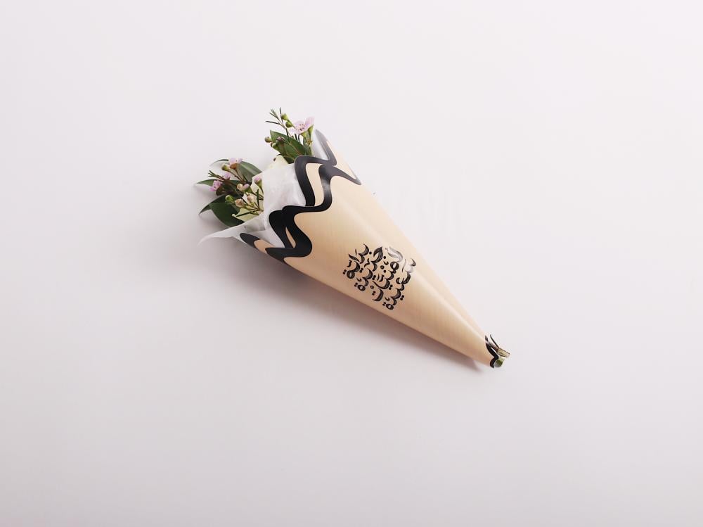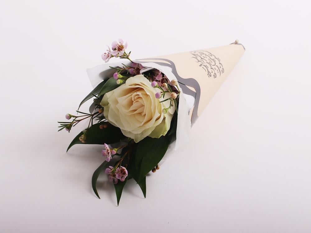 باقة مُصغرة من الورد الطبيعي مبهجة بغلاف يحاكي نشارة القلم وعبارة محفزة "بداية جديدة لأمنيات سعيدة"